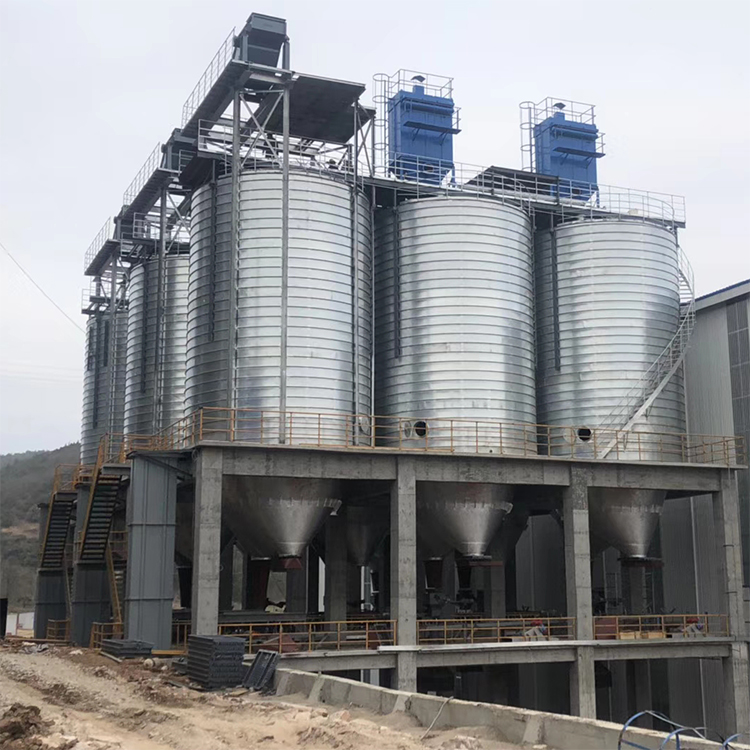 接收与清理设置在筒仓中央该形式筒仓一般采用对称排列,提升机井架固定,经过提升后的物料通过仓顶溜管进人筒仓。这种形式省去了仓顶输送设备和上通廊,从而节省了建造费用,缩短了建造工期。对于贮存时间要求较长的大型粮库,则应根据物料的流向、场地情况、工艺要求等合理地配置投料口、工作塔、烘干塔及延安钢板仓的位置。国华钢板仓介绍了这几种常见的进料形式,实际中可将各种形式相互组合,相互渗透,根据实际情况合理搭配,灵活选用。